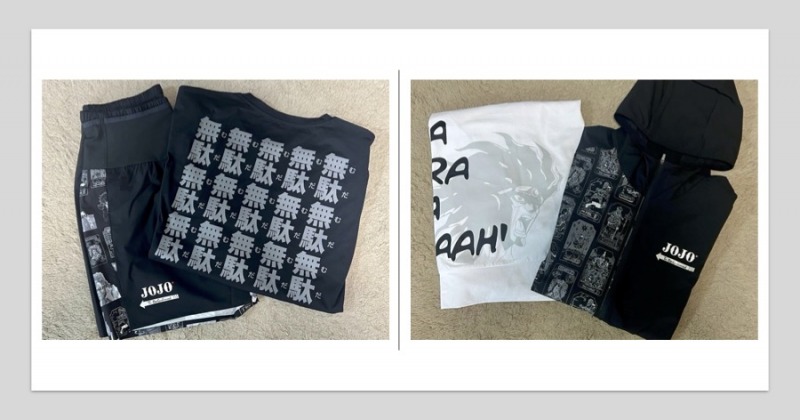 今回のコラボアイテムは、デザインはもちろん着用感や機能性も含め、どれも魅力的なものばかりでした。ジョジョファンの立場からすると、大好きなキャラクターがデザインされたアイテムは着ているだけでテンションが上がります。