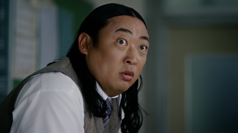 また、本CMで教師役を演じているのはお笑いトリオ「ロバート」の秋山竜次さん。前作に続いての出演となった秋山さんですが、今回は大胆にイメージを変え、真ん中分けの長髪スタイルで教師を演じています。秋山さんは「ロン毛イコール教師というイメージが強いので、ロン毛ではあるけれど、逆にそのイメージからできるだけ離れるように、いろんな注意を払いながら演じました」と、役作りのこだわりを語っていました。「CMの第一声は秋山さんから始まるんです。秋山さんの空気が(CM全体を)支配しているんです」と堺さんも絶賛する、秋山さんの演技にも注目です。