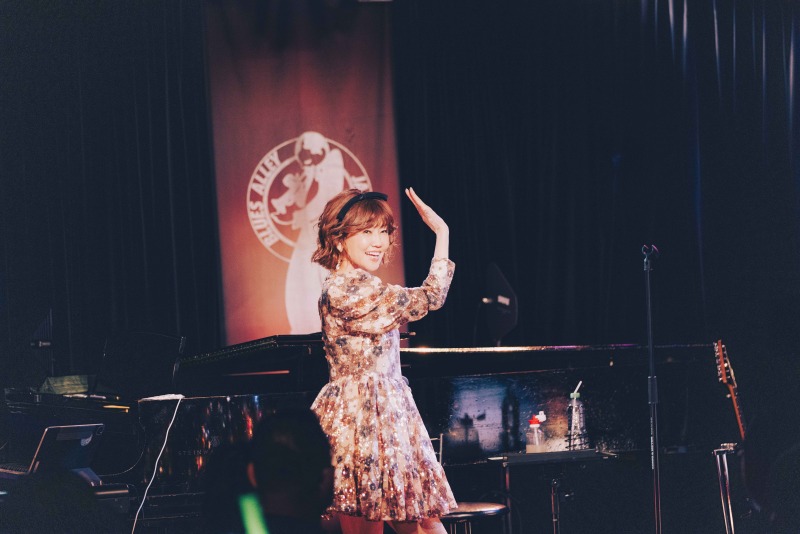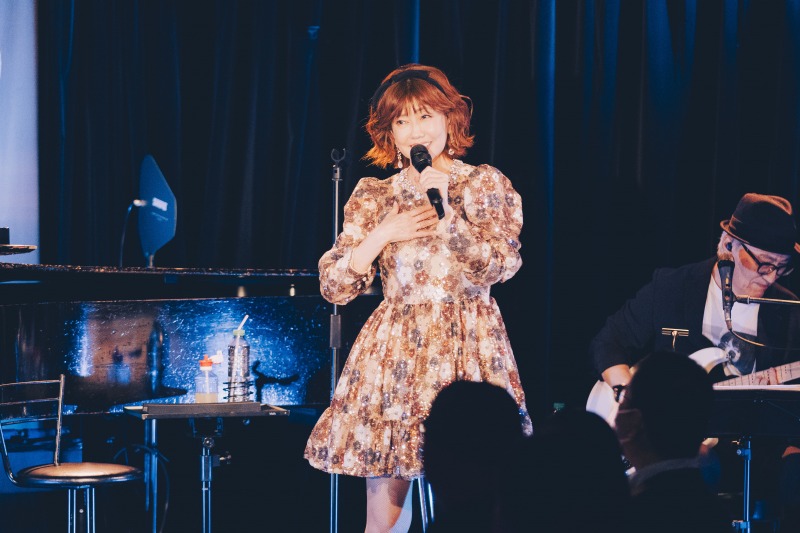 この日の1曲目は『雨の恋人』。続く『くれないホテル』まで、大人びた空気をまとったナンバーをしっとりと届け、会場を一気にライブの世界へ引き込んだ。最初のMCでは、遠方から集まったファンへの感謝を伝えつつ「WBCが忙しい中、目黒まで来てくれて、私に時間をくれてありがとうございます!」と笑顔。