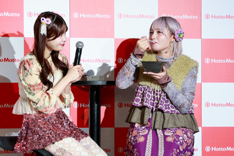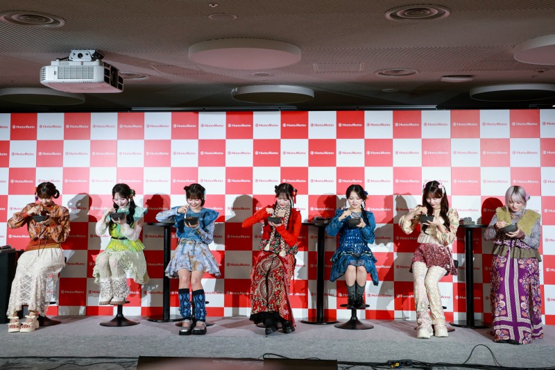 発表会では、新商品「焼肉ビビンバ」の商品概要を説明後、CANDY TUNE7名によるトークセッションを実施。CANDY TUNEのメンバーから、ほっともっとのCMキャラクターに決まった時の感想や、CM撮影中の撮影秘話などが明かされた。
