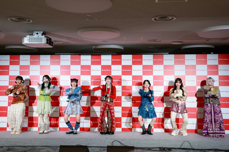そして、CANDY TUNEの7名はCMと同じくアジア風の衣装でステージに登壇。衣装プロデュースも手掛ける村川緋杏は「いつも大きめのプリプリ衣装を着ることが多いので、初めてのアジアテイストだったんですけど、それぞれすごく柄が華やかで、でもみんな違う形で、すごく7人でいると統一感があって、本当にとっても素敵な衣装になりました。嬉しいです!」と笑顔で語った。