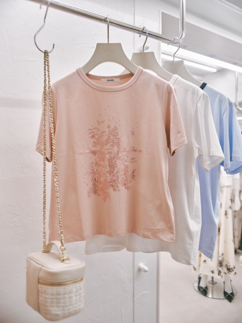 この旗艦店では、限定アイテム全9型を販売。“誕生”をテーマに、動物、植物、星を表したモチーフのTシャツやパーカー、こだわりのレースを使用したワンピース、ハローキティとのコラボ商品などが並びます。さらに、オープンから5月10日までの期間限定でテイクアウト専用のSNIDEL CAFEも登場。「ミルキーストロベリー」「ホワイトピーチソーダ」「スナラテ」「スナミルクティ」といった春らしいドリンクを楽しめるのが魅力です。