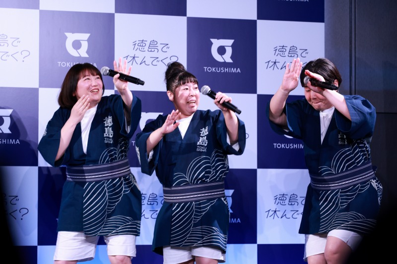 当日は、CMに出演している犬飼と瀬戸をはじめとし、徳島県好きを公言している森三中の黒沢かずこ、村上知子、大島美幸がゲストとして登壇したほか、徳島県知事の後藤田正純氏、一般社団法人リカバリー協会 代表理事の片野秀樹氏が登壇した。