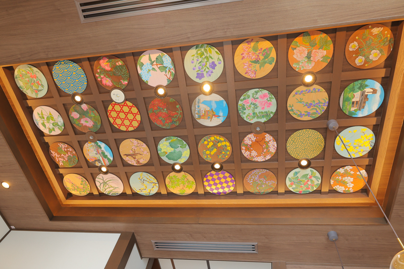 店内に足を踏み入れてまず目に入るのは、天井を彩るアートパネルである。京都の職人が手仕事で仕上げたという絵が連なり、その中には祇園の本店「天壇」を描いたパネルも紛れ込んでいる。京都らしさをさりげなく感じさせつつ、遊び心も忘れない仕掛けだ。木目を生かした落ち着いたインテリアと相まって、仙川にいながら京都に旅した気分を味わえる。