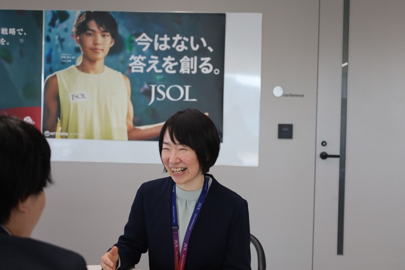 JSOLというと一般的にはあまり耳慣れない会社ですが、この広告は強烈なインパクトで非常に興味を引くものとなっています。この広告はどのように誕生し、どんなメッセージが込められているのか。JSOL経営企画本部広報部広報課の合志(ごうし)さんと渡邉さんを取材し、その背景と意図を深掘りしました。