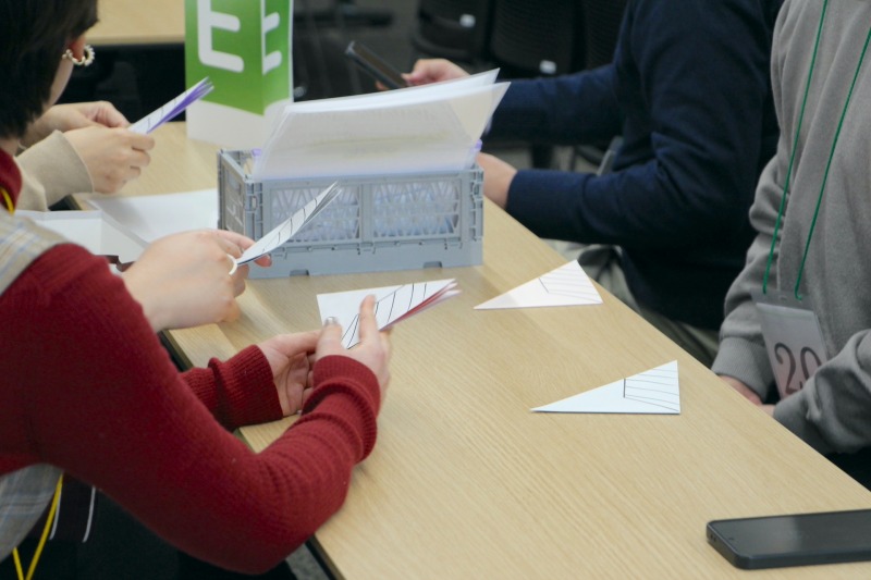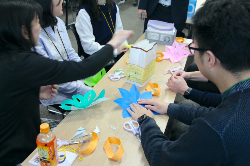 あちこちのテーブルからは感嘆の声が上がり、ハサミの入れ方について相談し合うなど、作業を介した自然なコミュニケーションが生まれていた。