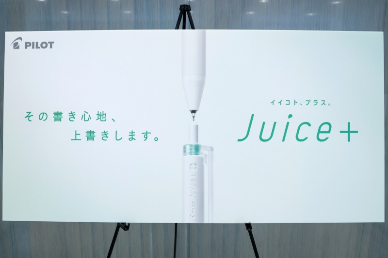 株式会社パイロットコーポレーションは、独自開発のペン先「シナジーチップ」を採用したゲルインキボールペンの新商品「Juice+」(希望小売価格:165円〘税込〙)を12月24(水)に発売する。新商品の発売を前に、メディア向けの新商品説明会が11月18日(火)に開催された。