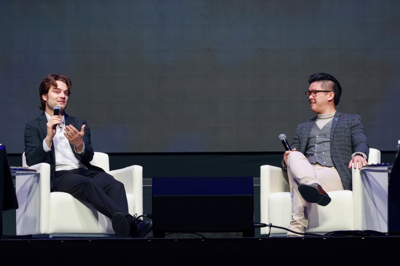 ビットコイン技術会社JAN3のCEOであるサムソン・モウ氏と衛藤バタラ氏(イーストベンチャーズ 創業パートナー)によるセッションでは、「ビットコイン、ゲーム理論、そして日本の経済的・戦略的未来」をテーマに、日本のマクロ経済危機をビットコインでどう突破するかが語られた。