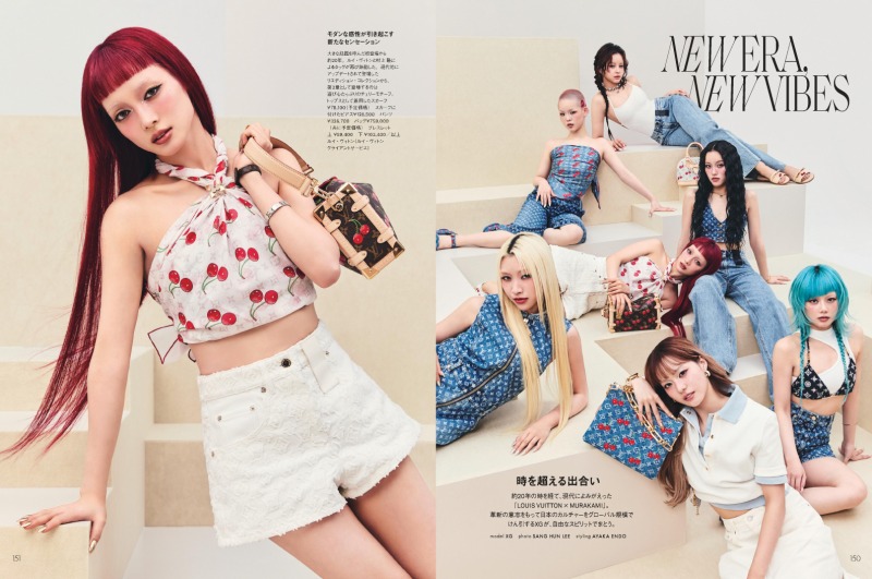 XGが同誌のカバーに登場するのは2024年9月号以来2度目。それぞれが力強いまなざしを見せている表紙に加え、XGのメンバーは誌面にも登場。ルイ・ヴィトンのモノグラム柄と「LOUIS VUITTON × MURAKAMI」コレクションのチェリーモチーフを基調にしたクラシック&ポップなスタイリングを披露。全8ページにわたる特集となっています。