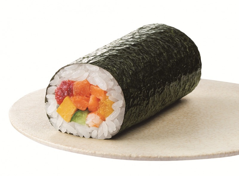 銀座おのでら監修 特性恵方巻は銀座おのでらの寿司の特徴でもある赤酢を使用した赤シャリの旨味がポイントとなる。素材を活かした上品な味で具沢山の贅沢な味わいだ。