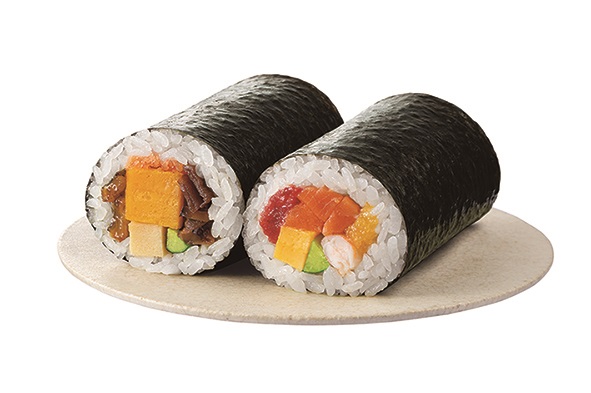 焼肉トラジ監修 牛焼肉恵方巻は焼肉トラジのたれの味を再現。隠し味に魚介や昆布のだしを加えたコク深いキムチが入っている。お肉ということで食べ応えもあり満足感も高い仕立てだ。