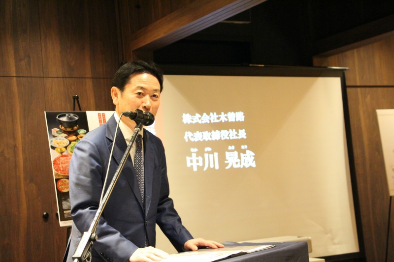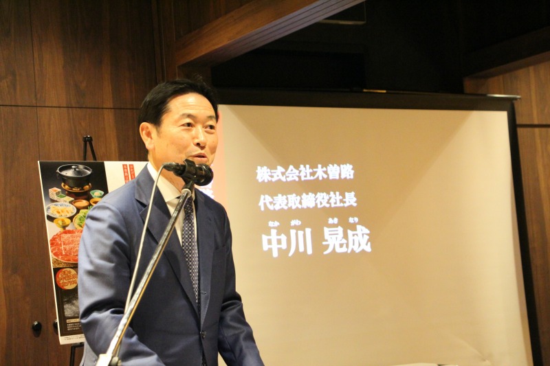 発表会の冒頭、登壇した株式会社木曽路の代表取締役社長・中川晃成氏は、60周年という節目を「人間で言えば還暦。原点に帰り、社会に広く木曽路を知っていただく第二の人生のスタートだ」と力強く宣言した。