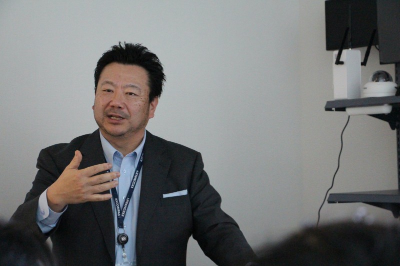 発表会の冒頭で登壇したKKCompany Japan合同会社 代表のトニー・マツハシ氏は、同社の成り立ちとAI活用の考え方を紹介した。