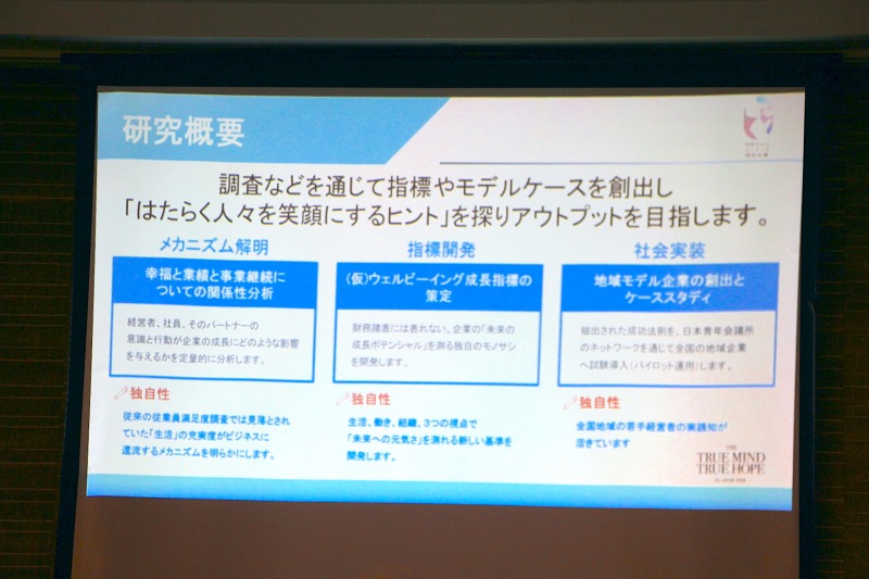 今後のスケジュールとしては、5月・6月に企業向けのウェルビーイングセミナーを開催。実際に企業のヒアリングを行い、社員の幸福度がどう業績に還流するかを伴走支援しながら検証していく。そして、10月に開催されるJCI日本全国大会において、より詳細な調査結果と社会実装の成果が発表される見込みだ。