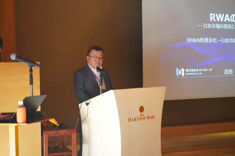 株式会社ネットスターズ 取締役 吉田 剛氏はRWAのトークン化とは、実物資産や無形資産の持つ価値や権利を、ブロックチェーン上のデジタル証券として発行・取引できるようにすること。RWAは伝統金融の延長で多くのメリットがあるとして、日本におけるRWA技術の発展などを語った。