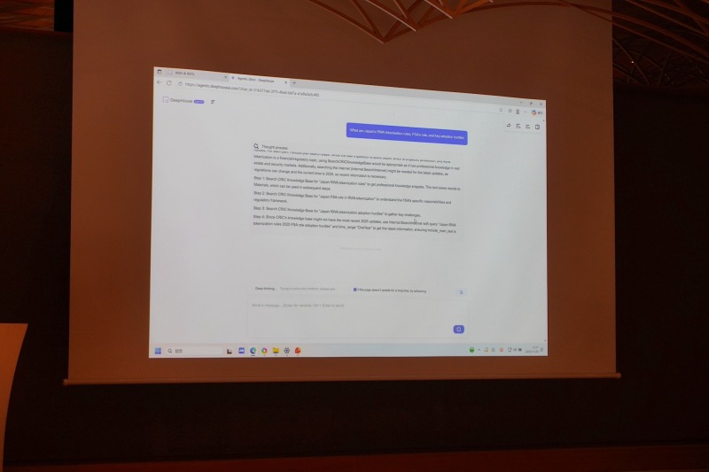 今回のシンポジウムのメインとして「DeepHouse AI – アジア RWA & REITs 投資アドバイザリーサービス」のプロダクト発表もリーディングホールディングスのRWAプロジェクト責任者李氏に行われた。このAI投資アドバイザリーシステムは、AIによる動的評価、適合性判定、そして小口投資の高度化を強みとし、従来の不動産投資が抱えてきた非効率性や高い参入障壁を技術の力で解消するものだ。