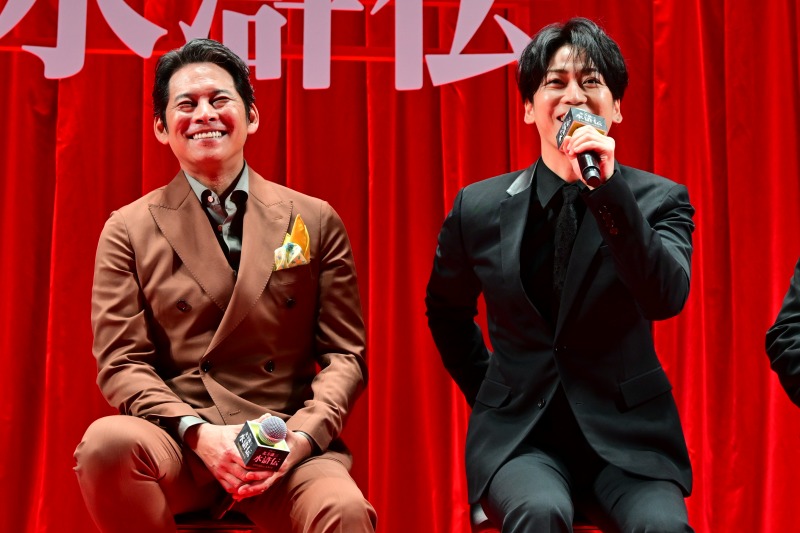 梁山泊の運命に大きな影響を与える、武を極めし孤高の師・王進役の佐藤は、棒術のアクションを見どころに。「刀を使った立ち回りの経験はあるけれど、棒術はなかなかない。亀梨さんは若いから体が動く…ホント悔しい!」とジェラシー。これに亀梨はアクション時の佐藤の懐の広さに触れつつ「浩市さんとは20年前に共演して、そこからの関係性があるので良かったです。これが“初めまして!”だったら思い切りいけなかったと思う」と感謝した。