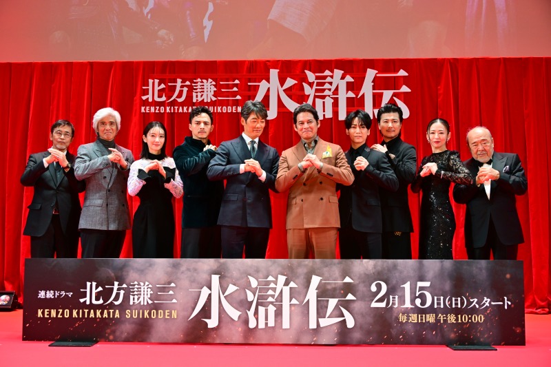 シリーズ累計発行部数1,160万部を超える大河小説の金字塔を実写化した、連続ドラマ『北方謙三 水滸伝』(2 月 15 日 日曜放送&配信スタート)。2月9日にはヒューリックホール東京にてジャパンプレミアが実施され、主演の織田裕二、共演の反町隆史、亀梨和也、満島真之介、波留、玉山鉄二、松雪泰子、佐藤浩市、原作者の北方謙三氏、そして若松節朗監督が登壇した。