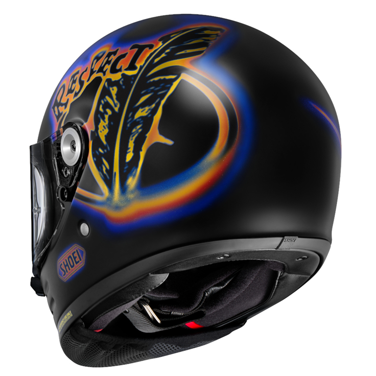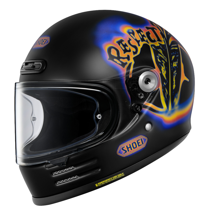 まず一つは、ネオクラシックなフルフェイス「Glamster(グラムスター) Koshi Inaba」。ブラックを基調に、内に秘めた“熱”を思わせるグラフィックが特徴で、稲葉の楽曲世界を色で表現したようなデザインとなっている。価格は税込75,900円。