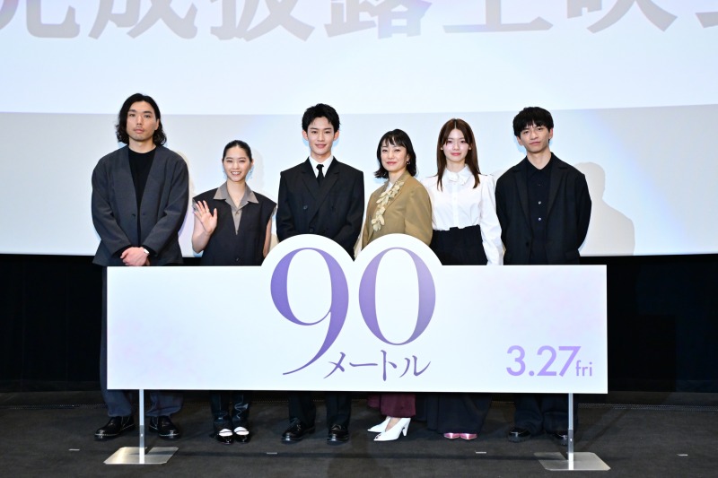 親子の絆と揺るぎない愛を綴った映画『90メートル』(3月27日公開)がついに完成!2月23日には新宿バルト9にて完成披露上映会が実施され、W主演の山時聡真と菅野美穂、共演の西野七瀬、南琴奈、田中偉登、そして中川駿監督が参加した。
