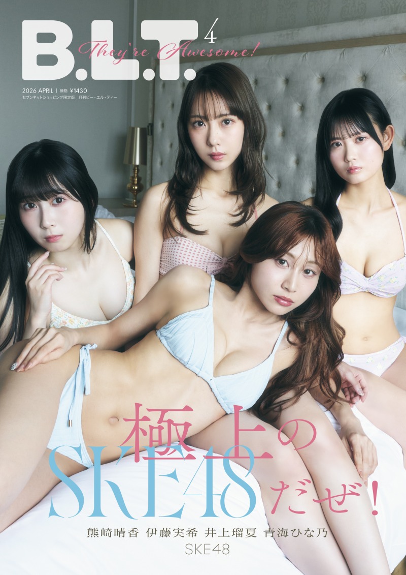 アイドルグループ「SKE48」のメンバー・熊崎晴香さん、伊藤実希さん、井上瑠夏さん、青海ひな乃さんの4人が、2月28日に発売の雑誌「B.L.T.4月号」セブンネットショッピング限定版の表紙に登場します。