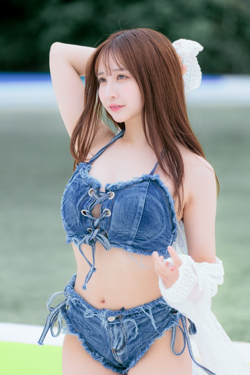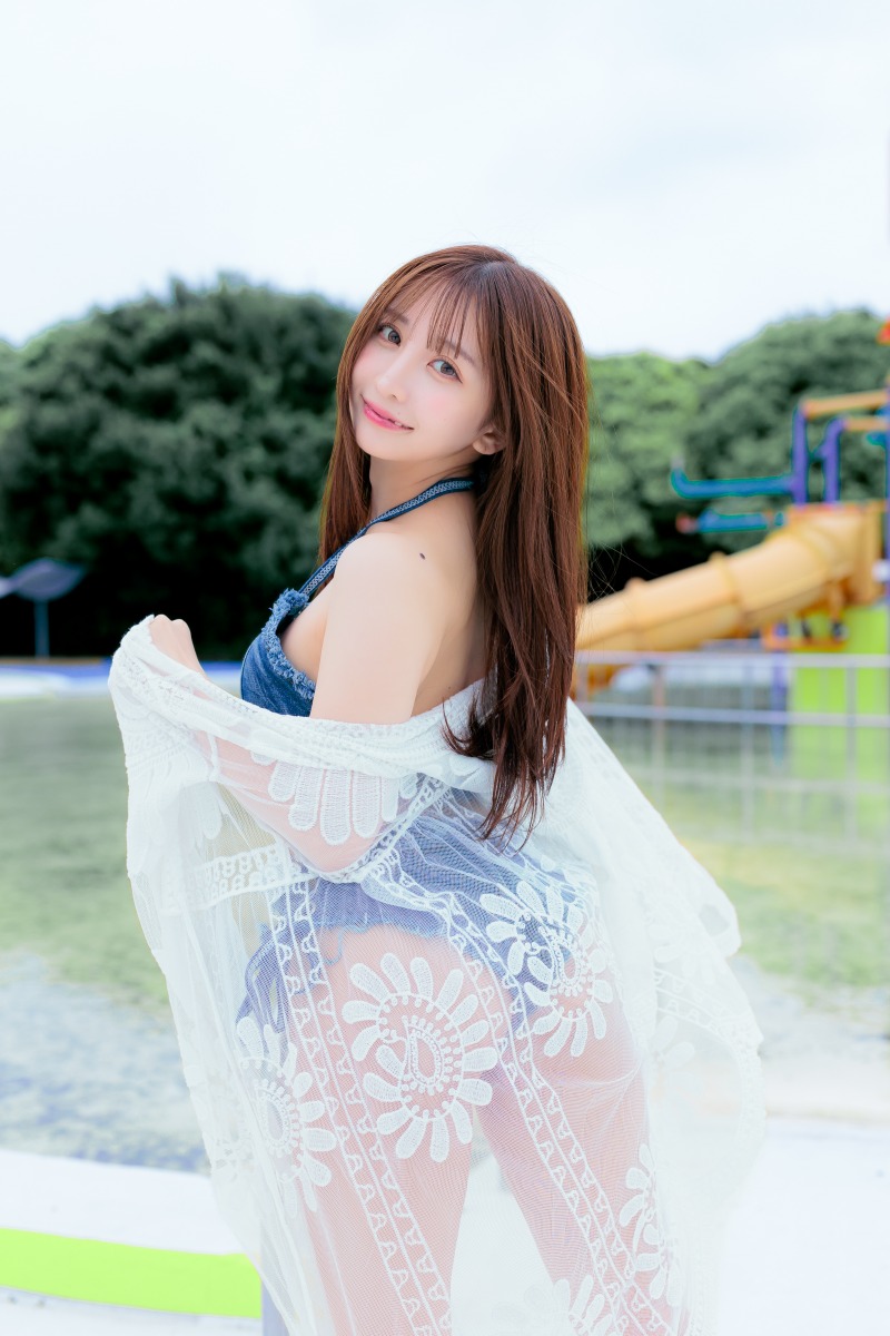 この日の水着はすべて自前で用意したそうで、「アメリカン柄やデニム風の水着みたいな、ちょっと変わったデザインが好きなんですよね」と説明。中でも1部で着用したドット柄の水着については、「たぶん、一般的には一番好かれそうですよね」と、ファンの好みにも配慮して選んだという。