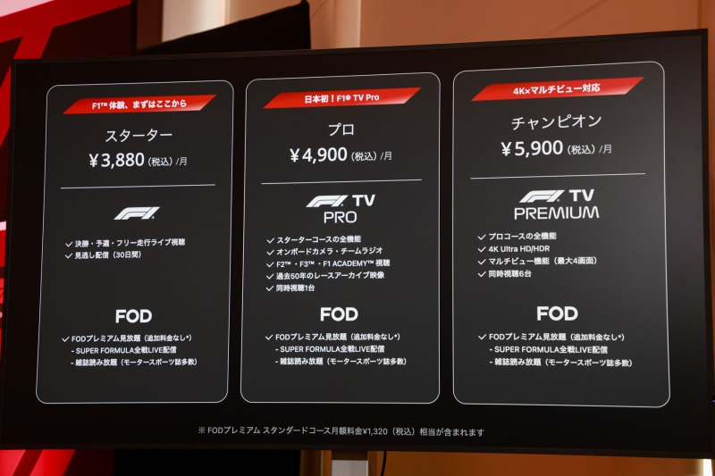 株式会社フジテレビジョンは、2月26日(木)より、「Formula 1」日本国内独占配信を行うプラットフォーム「FOD」にて、新料金プラン「FOD F1プラン」の提供をスタートさせる