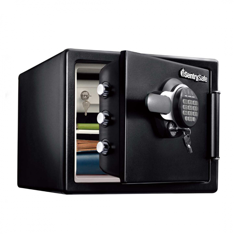 極太カンヌキとこじ開けに強いセキュリティ性を持ち、2時間で1010℃まで加熱するUL耐火試験とデジタルメディア耐火テストをクリア。耐水性能もあり、家庭用金庫として最上級の性能を備えています。