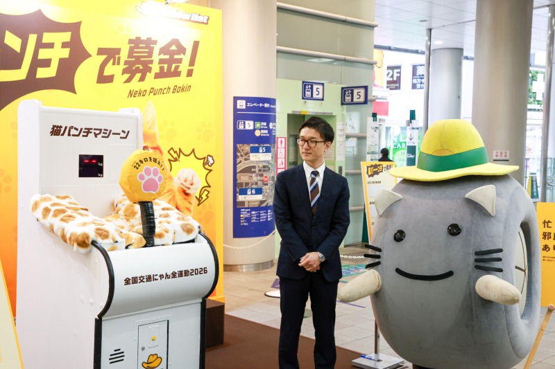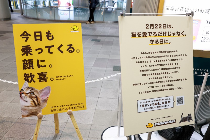 カー用品専門店のイエローハットを全国展開する株式会社イエローハットは、2月22日(日)の「猫の日」に合わせて、渋谷マークシティ マークイベントスクエアにて、保護猫の支援を目的とした募金イベント「猫パンチで募金」を実施した。