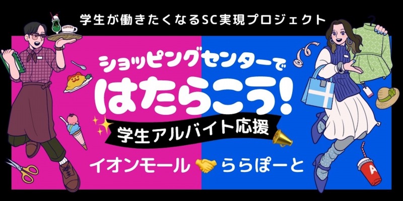 本プロジェクトは、「イオンモール」と「ららぽーと」という競合関係にある2社が連携して実施する点が特徴だ。背景には、ショッピングセンター業界全体で深刻化する人手不足がある。業界横断で学生採用を強化することで、課題解決と新たな価値創出を目指している。