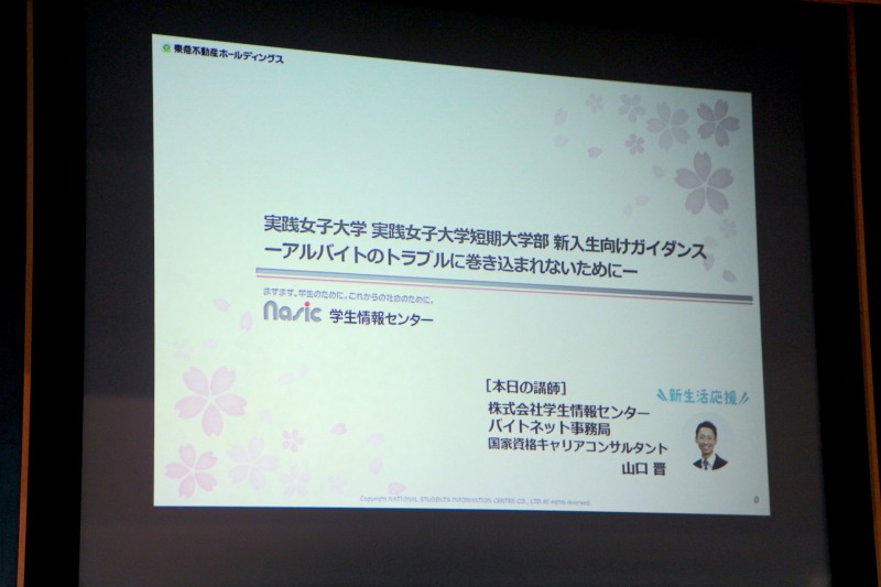 イベント前半では、株式会社学生情報センターによるミニセミナーが実施された。テーマは「アルバイトの基礎知識」。新入生も多く参加する中、アルバイトのメリット・デメリットから丁寧に解説が行われた。