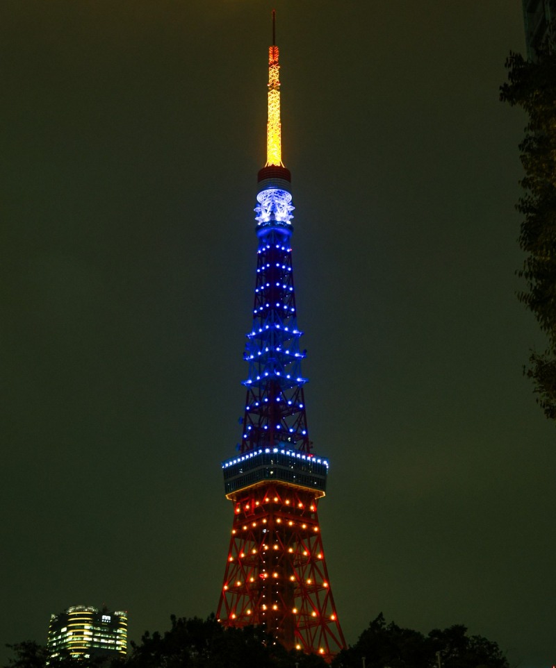 プロジェクト紹介の後には、共同代表 ヒューゴ・チャン氏も加えた3人で東京タワーへの点灯式が行われた。3人が一斉にボタンを押すと、真っ暗だった東京タワーが同グループのロゴと同じ赤、青、黄色の3色にライトアップされた。