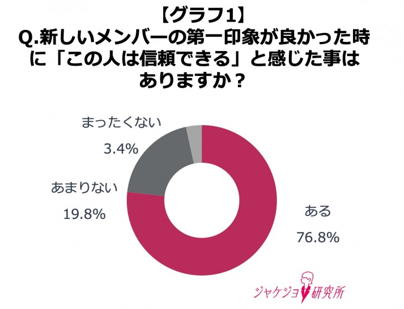 まず 「新しいメンバーの第一印象が良かった時に、『この人は信頼できる』と感じたことがあるか」を尋ねたところ、全体の約8割が「ある」(76.8%)と回答。 この結果から、「第一印象が良い=信頼されやすい」という構図が、実際の職場環境においても広く実感されていることが読み取れます。