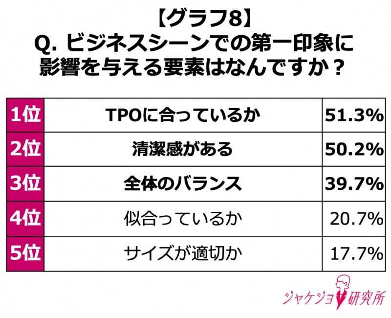 ■信頼を左右するカギは「TPO」と「清潔感」。第一印象に影響する要因が明らかに