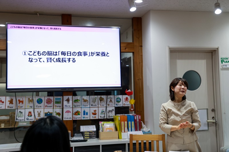 本セミナーでは、主に小山氏の著書『「賢い脳」は脂が9割 地頭のよい子をつくる「育脳ごはん」』をもとに、「こどもの脳は『毎日の食事』が刺激となって、賢く成長する」「遺伝だけじゃない!『栄養』がよければ知能は高まる」「脳にいいオメガ3系脂肪酸の摂り方」などが説明された。同著は、小児科医・医学博士の成田奈緒子氏が監修を務めている。