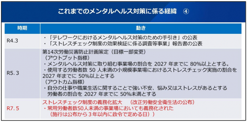続いて、厚生労働省の加藤優奈専門官が登壇し、精神障害による労災支給決定件数が2024年度に過去最多を更新したことを報告するとともに、令和7年度の法改正により、50人未満の事業場にもストレスチェック制度の義務化が予定されていることなどが示された。