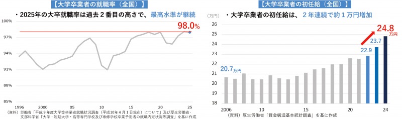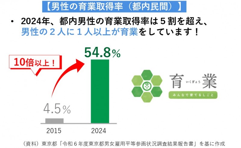 また、大学卒業者の就職率の向上や初任給の増加など、若者の雇用環境も向上しており、結婚や子供を持つことへの経済的な不安の軽減につながっています。 さらに、都内民間企業に勤める男性の育業取得率が50%を超えるなど、雇用や労働環境においても少子化を解決するための変化が見られます。