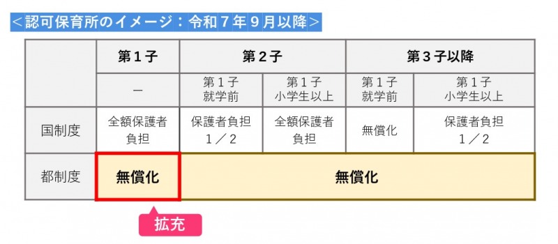 これまでは第2子以降のみ保育料無償化だったものを2025年9月より第1子も無償化