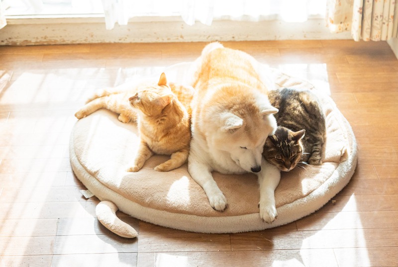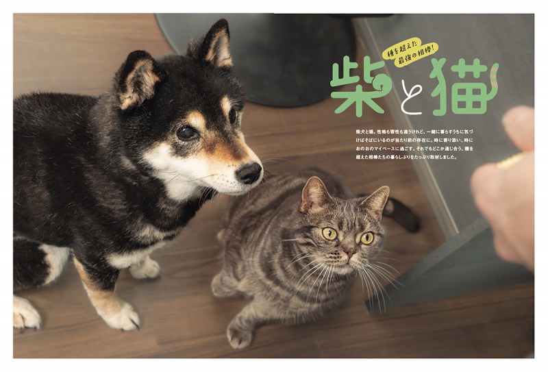 性格、習性が違っても寄り添いながらマイペースに過ごす柴犬と猫。どこか通じ合う種を超えた相棒たちの暮らしぶりを取材。ピタッと寄り添って寝ていたり、スリスリしながらお互いを毛づくろいしたり、一緒にお出かけを楽しんだりと、仲のよい柴犬と猫が多数登場します。