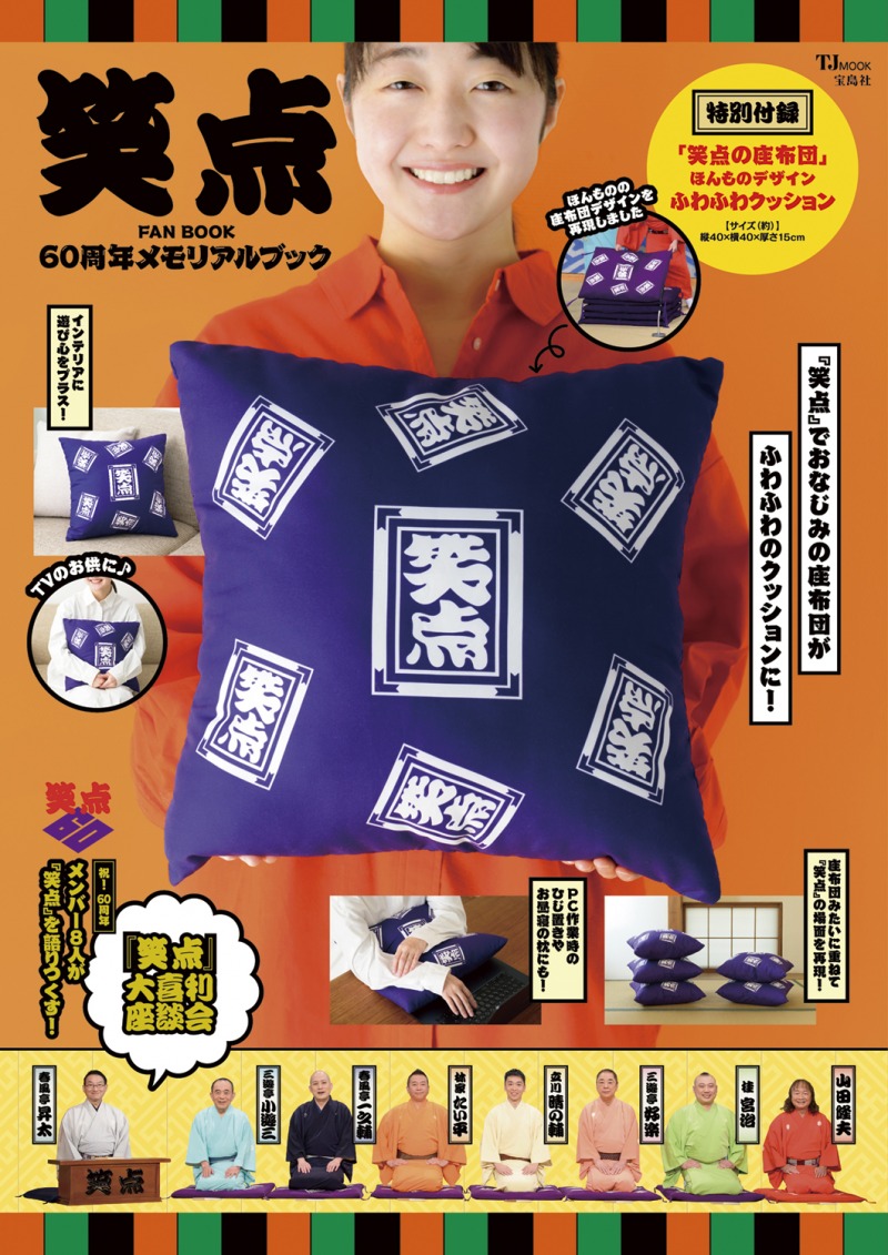 同誌の限定アイテムは「笑点の座布団」ほんものデザインふわふわクッション。こちらは心地よい手触りと使いやすいサイズ感のクッションとなっており、自分の家で笑点の気分を楽しめるアイテムです。