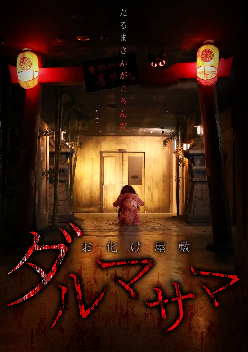 怨霊「ダルマサマ」が潜むウォークスルーアトラクション。「ダルマサマ」に見つかってしまったら動きを止めて後ろを向くまでじっと待ってください。こちらを見ている間に動いてしまうと…。