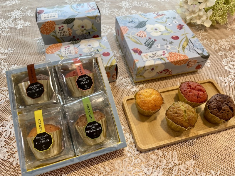 人気のトリュフケーキが、ころんと可愛いミニサイズに。定番の「ショコラ」は安定の濃厚さ。ミニサイズでも満足感のある食べ応えです。「ベリー」は甘酸っぱさがアクセントになり、中のトリュフ・オ・ショコラと相性抜群。「レモン」は爽やかな酸味が広がり、軽やかな印象。ケシの実の食感がアクセントになっています。
