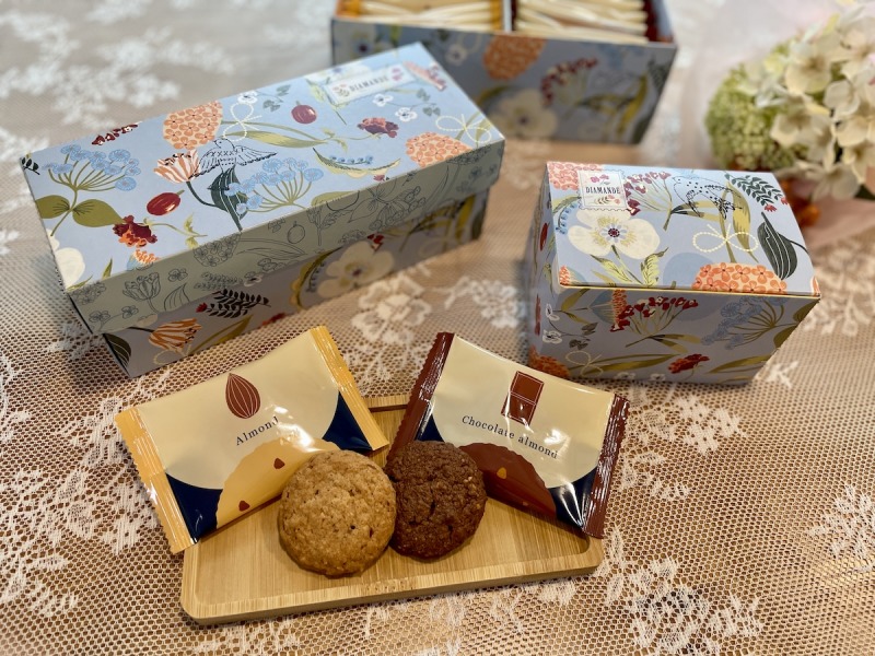 沖縄県産のさとうきびの原料糖のみで作られた「本和香糖(ほんわかとう)」を使用した口当たり良く、まろやかな甘さにサクッとした食感のクッキー。サクッと軽い食感のあとに、アーモンドの香ばしさがじんわり広がる奥深い味わい。チョコアーモンドは、カカオの風味が重なりコク深い仕上がり。軽やかさと満足感のバランスが絶妙です。